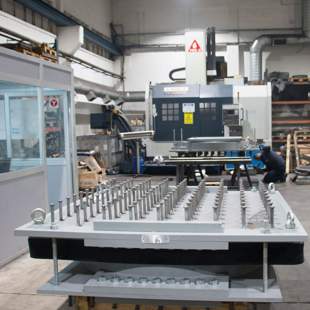 Köprü ve viyadükler gibi farklı dönme ve yer değiştirme etkilerine maruz yapılarda kullanılan ve EN 1337-5 standardına göre tasarlanan çanak mesnettir.